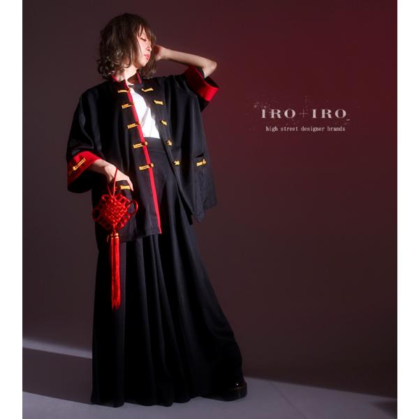 favorite IRO IRO イロイロ チャイナ 着物 ポンチョ パーカー パーカー 和洋折衷 チャイナ 黒×緑 Favoriteチャイナボタン和袖