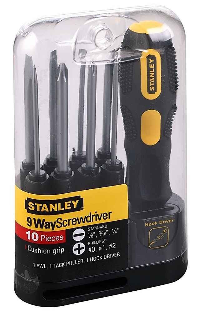 Stanley offers this 9 Way Screwdriver Set, STHT62511-812 for the ease of the customers. This product has a combination of screw drivers. These screw drivers are available in different shapes and sizes. These are an ideal choice for professional as well as for personal use. Stanley screw drivers are manufactured with high quality materials that is why it is the best one tool. These tools can last longer and serve for a longer time. These tools are available with replacement warranty on manufacturing defects. You can easily use them and it is very easy to maintain them. The set has interchangeable bars maximize versatility, reduces the number of tools user needs to carry and there is storage case included too,